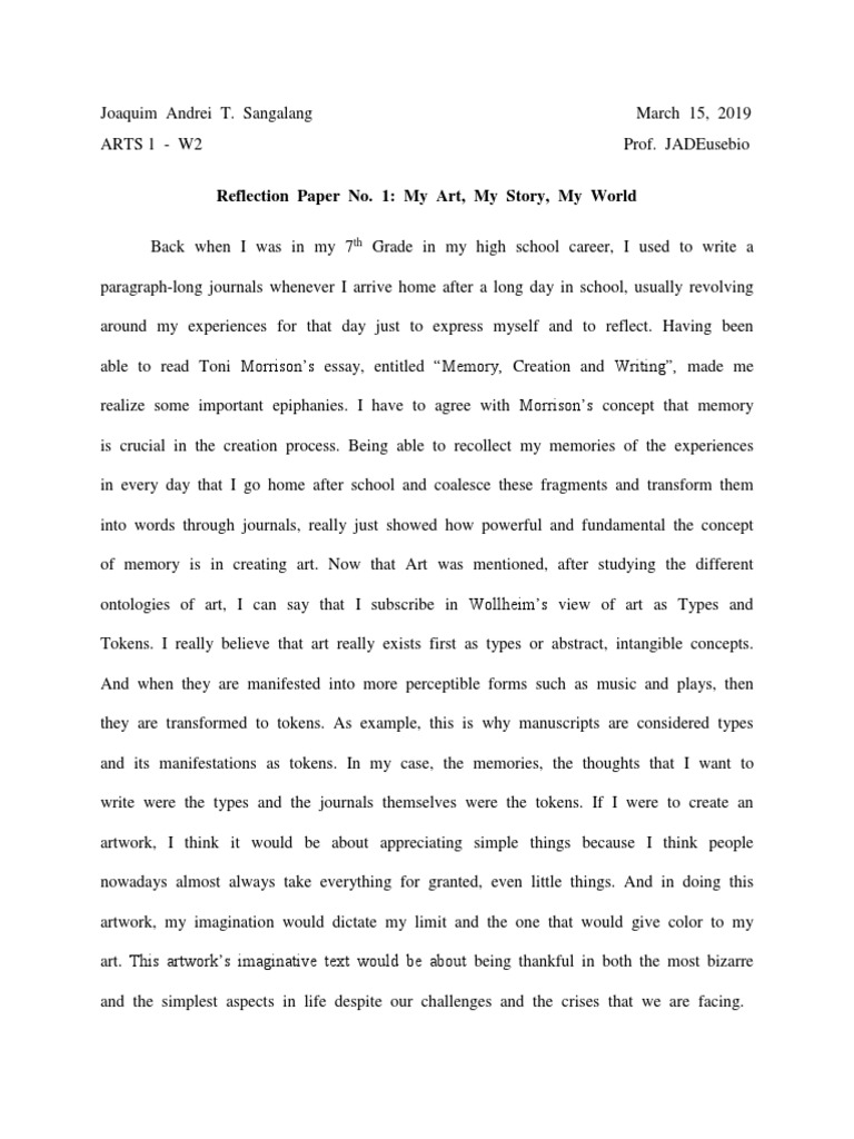 Pdf Reflection Paper Reflection On The Group Project Introduction Peter Ying Academia Edu from 0.academia-photos.com A good example of a reflection paper should tell a story then pass a judgment. A reflection paper is an essay that focuses on your personal thoughts related to an experience, topic, or behavior. What is a reflective paper. A reflective paper example is a lot like a personal journal or diary. A reflection paper is a type of paper that requires you to write your opinion on a topic, supporting it with your observations and personal examples. How to write a reflection paper: Sample reflection paper (submitted by a student in crim 1006e, fall term 2003). Professional reflection paper requires a method for the analysis of professional behavior that is quite commonly used among social workers as well as what is an example of reflection paper?